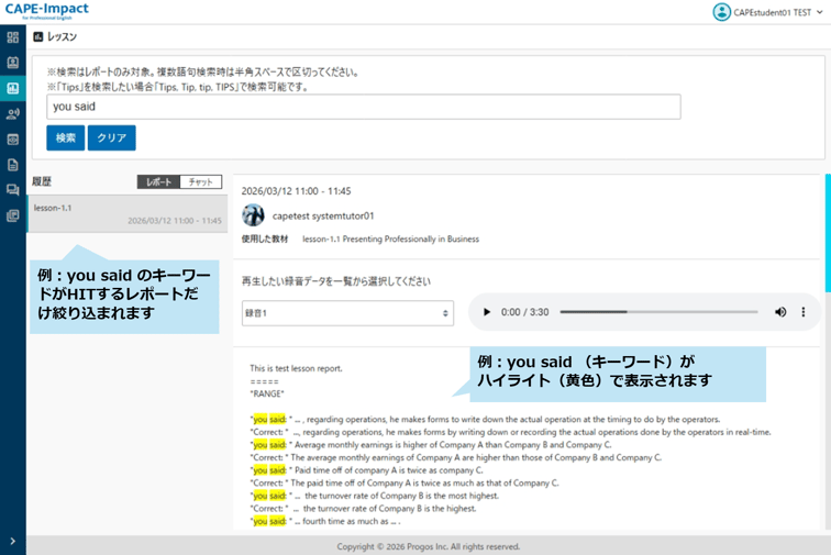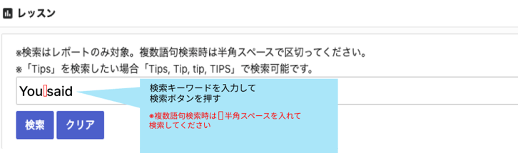 例)レッスン中の「You Said(自分の発言)」が含まれているレポートのみを表示したい