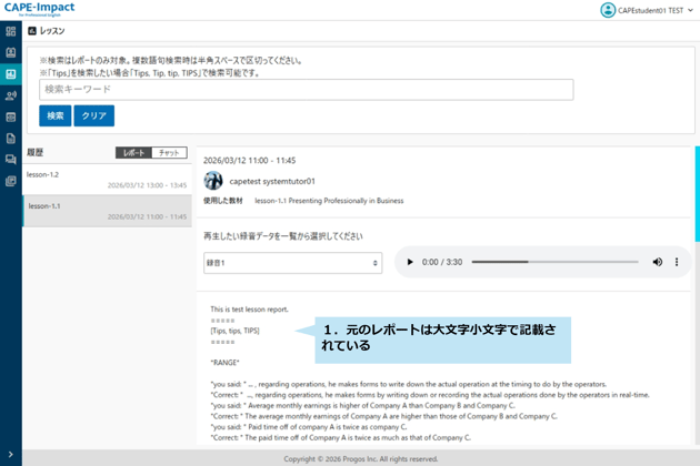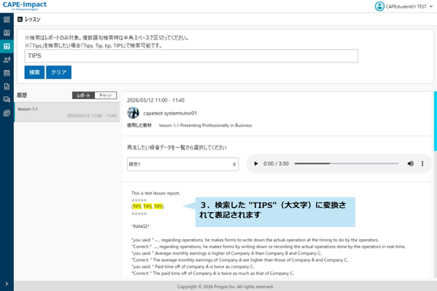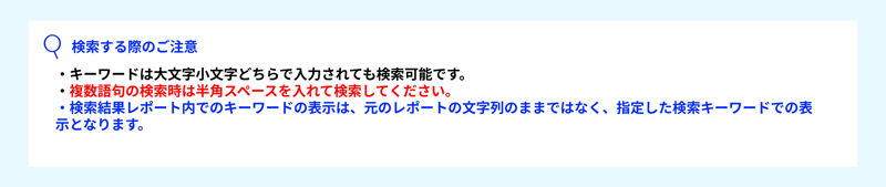 ※"TIPS" で検索された場合、レポート内 "Tips" として記載されている場合であっても "TIPS" と表記されます。